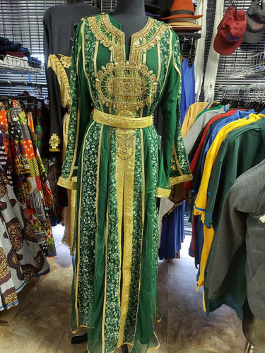 Hebrew Israelite Women's Brown & Gold Kaftan Dress with Gold Fringes