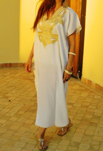 Winter Winter White Caftan Kaftan Maxi Dress - White with Gold