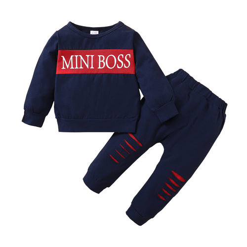 Newborn Baby Boy 2PCS Long Sleeve Letter Print Tops & Ripped Pants Set