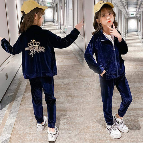 Girls Teen Zip-Up Fall Boutique Velour Tracksuit Set