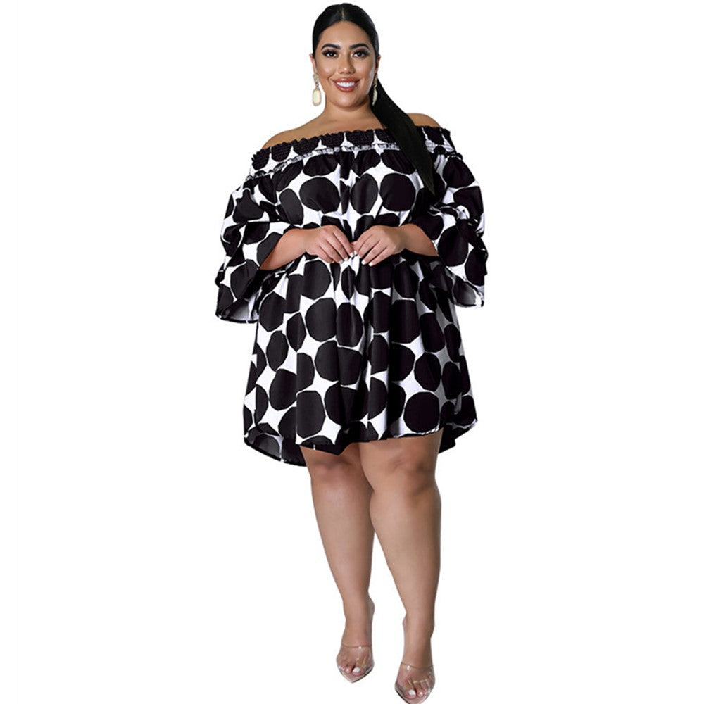 Wmstar Plus Size Dresses for Women Summer Dot Pint Off Shoulder Sweet Elegant Casual Mini Dress New Style